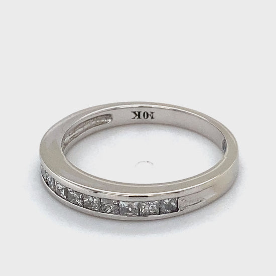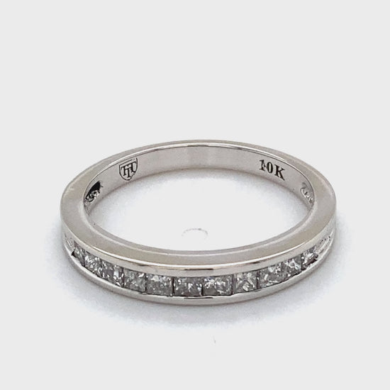 Description: GENT'S GOLD-DIAMOND WEDDING BAND: 2.6g; 1.7DWT 10K-W/G, 11-PRINCESS CUT DIAMOND 0.50CTW; SIZE:7