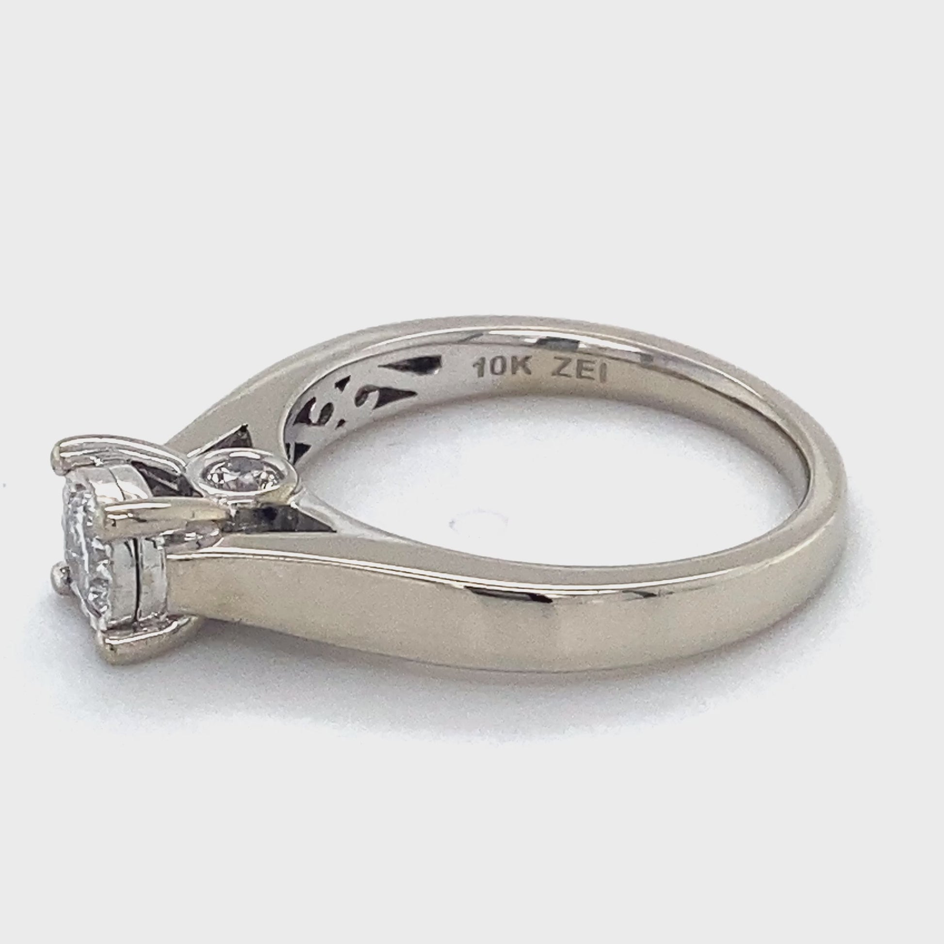 Description: LADY'S DIAMOND FASHION RING: 3.6g; 2.3DWT 10K-W/G, 3-ROUND BRILLIANT CUT DIAMOND 0.50CTW; SIZE:7