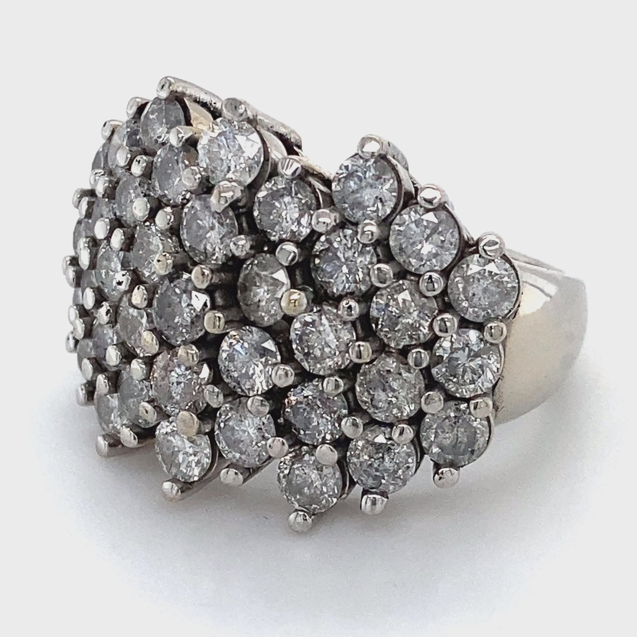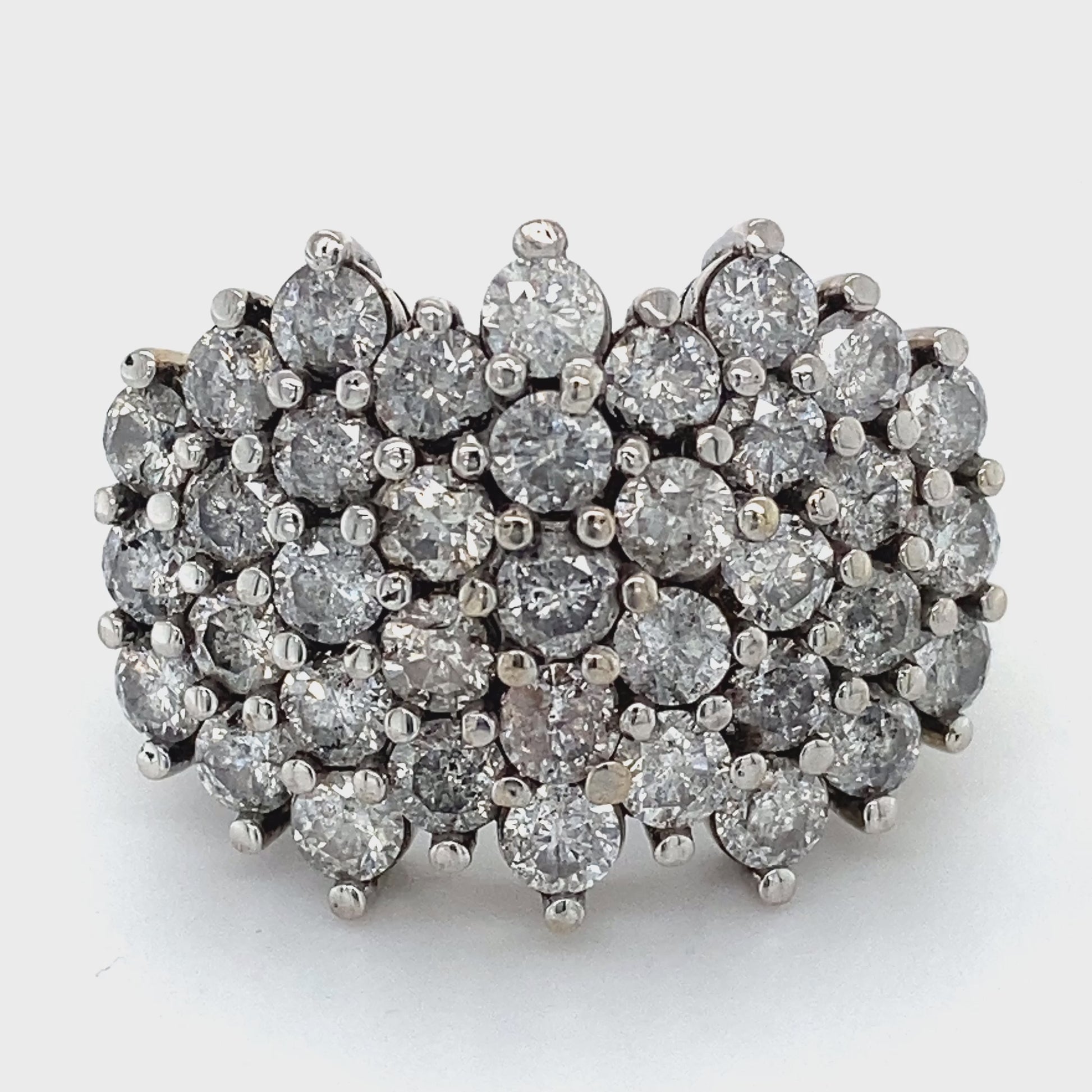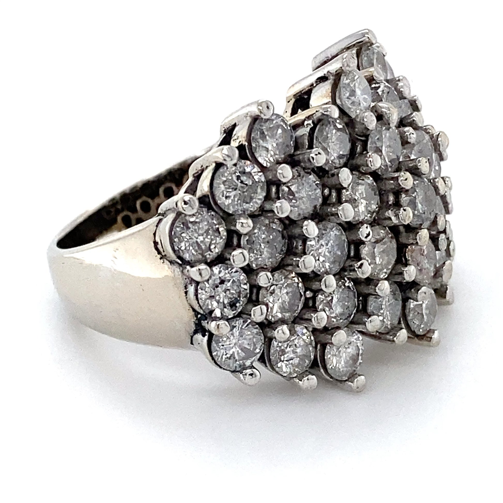 Description: LADY'S DIAMOND FASHION RING: 12.3g; 7.9DWT 10K-W/G, 37-ROUND BRILLIANT CUT DIAMOND 5.00CTW; SIZE:8.5