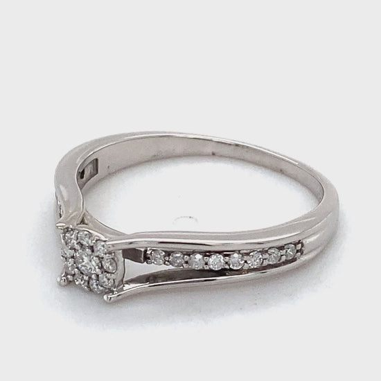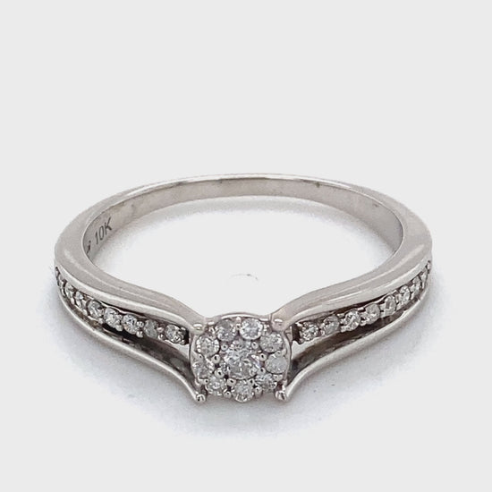Description: LADY'S DIAMOND FASHION RING: 1.8DWT 10K-W/G, 26-SINGLE CUT DIAMOND 0.150CTW; SIZE:9