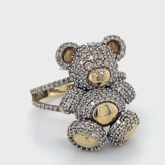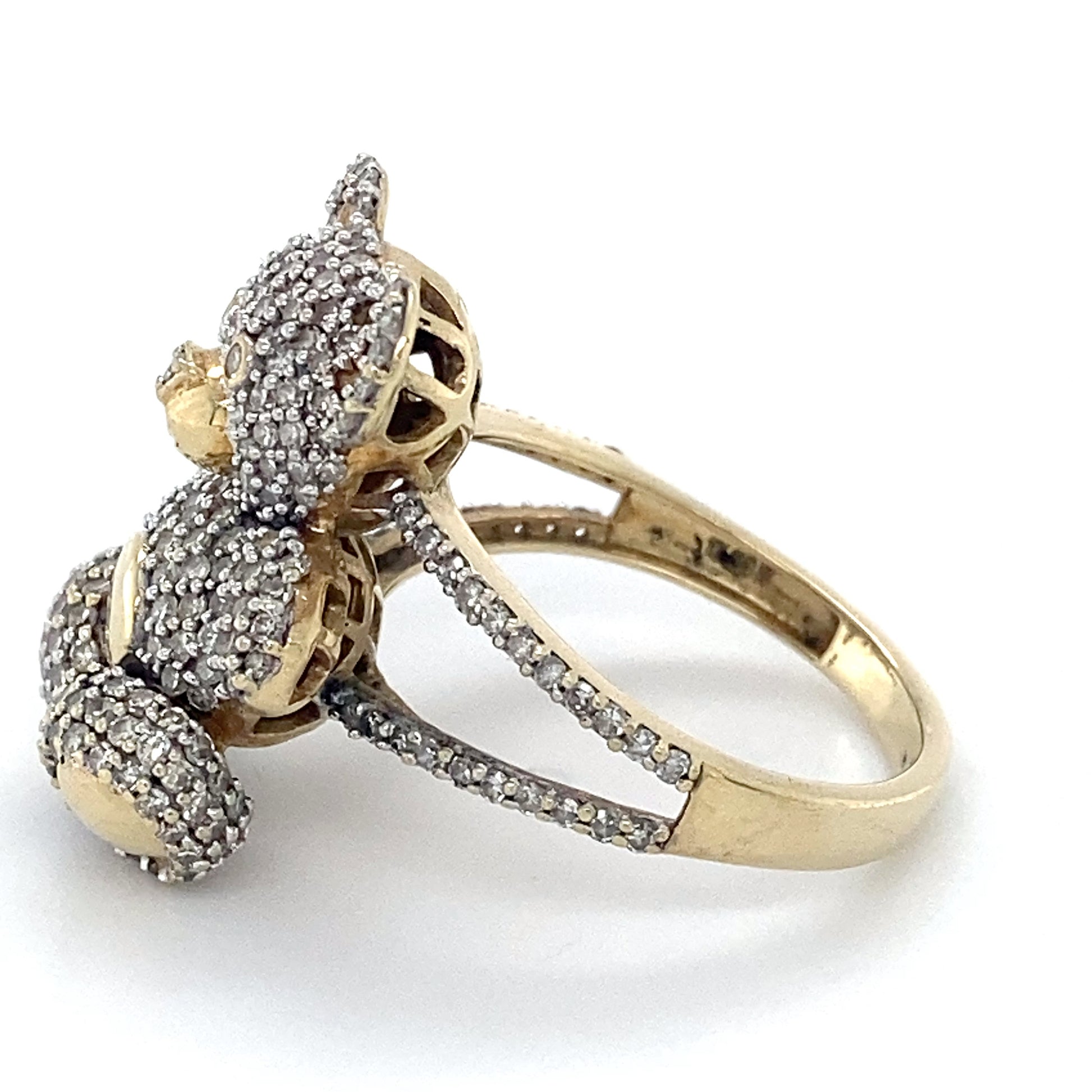 10K Yellow Gold & Diamond Teddy Bear Ring; 3.7DWT; Size 6.5