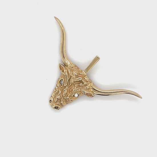 10K Yellow Gold Diamond Longhorn Bull Pendant; .02CTW; 2.3DWT; 3.6g