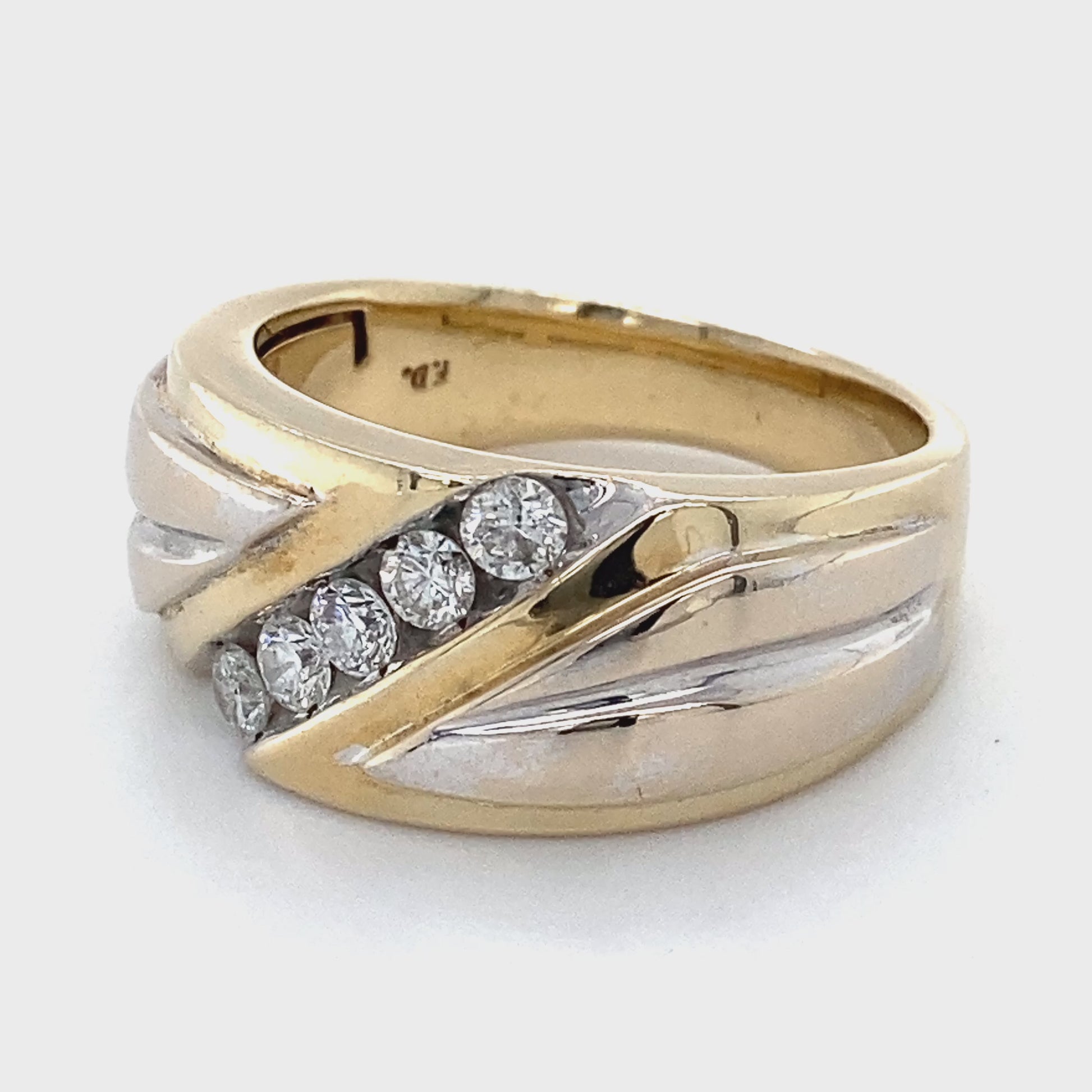 Description: LADY'S DIAMOND FASHION RING: 9.7g; 6.2DWT 10K-2TONE, 5-ROUND BRILLIANT CUT DIAMOND 0.50CTW; SIZE:9.5
