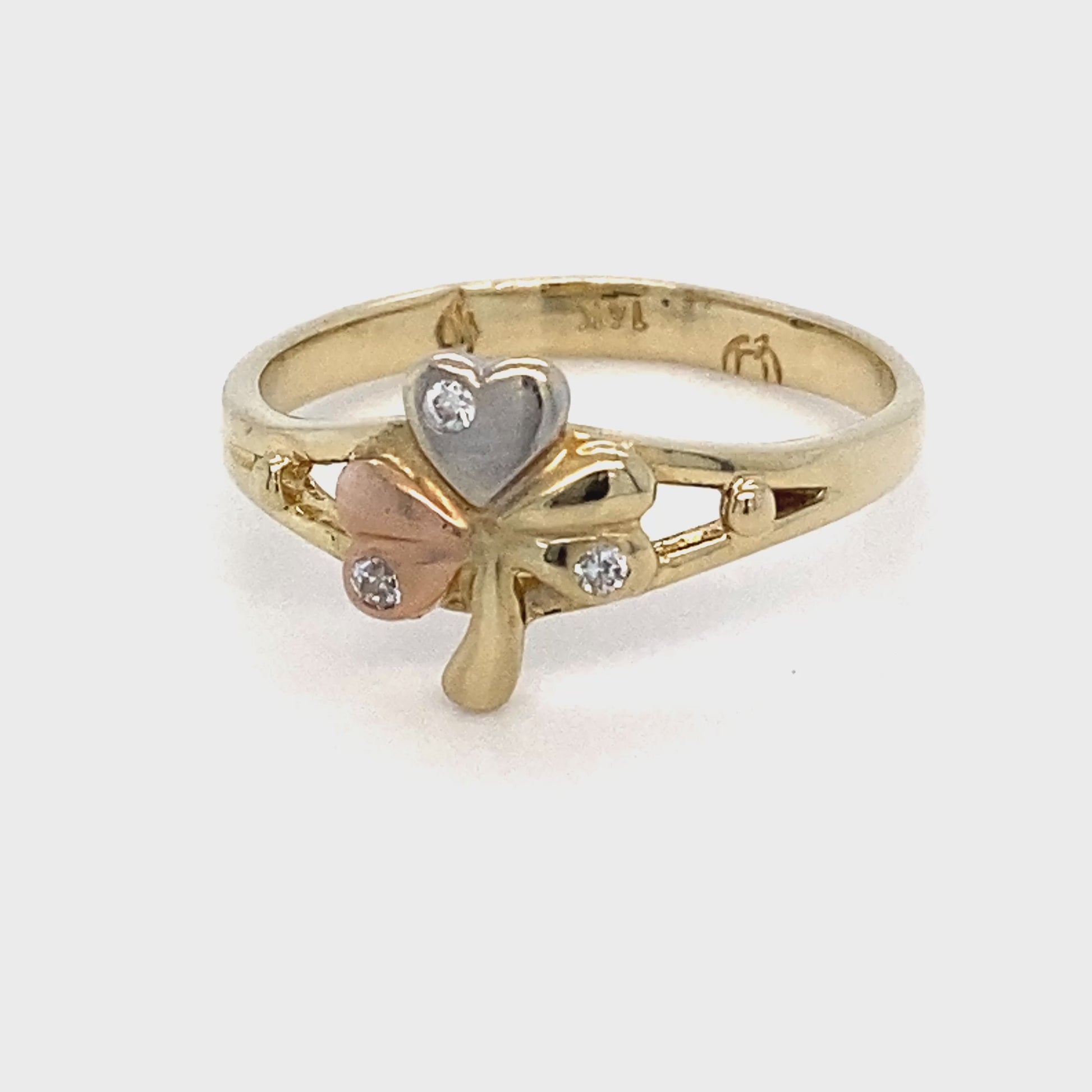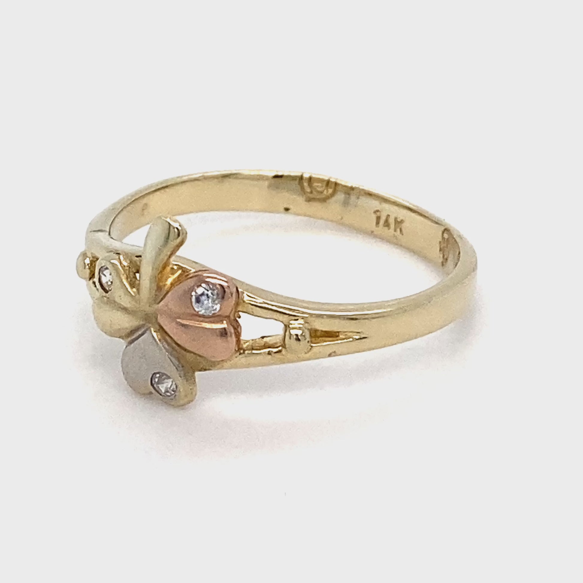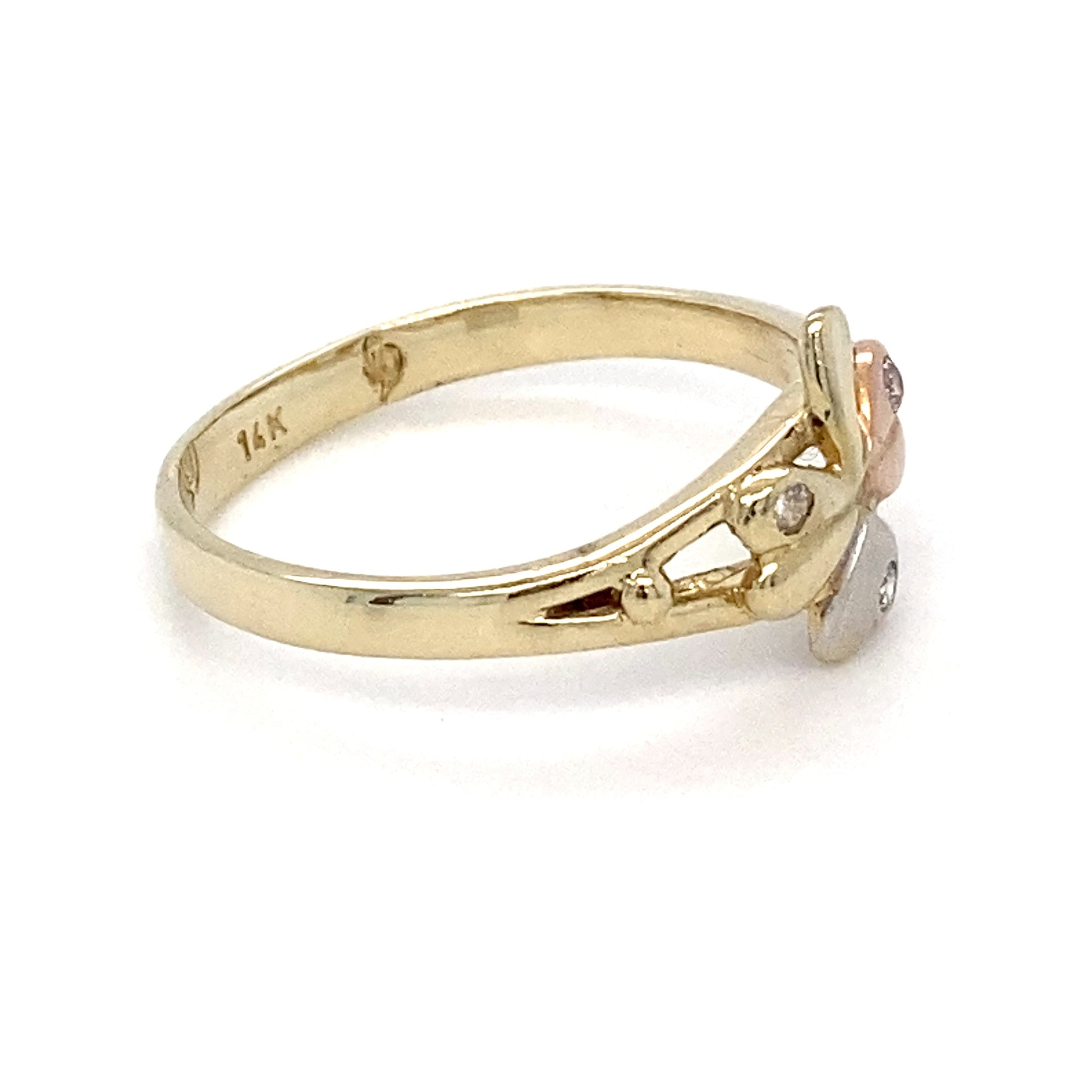 14K 3-Tone Yellow, White & Rose Gold Cubic Zirconia Ring; 1.6DWT; 2.4g; Size 7.5