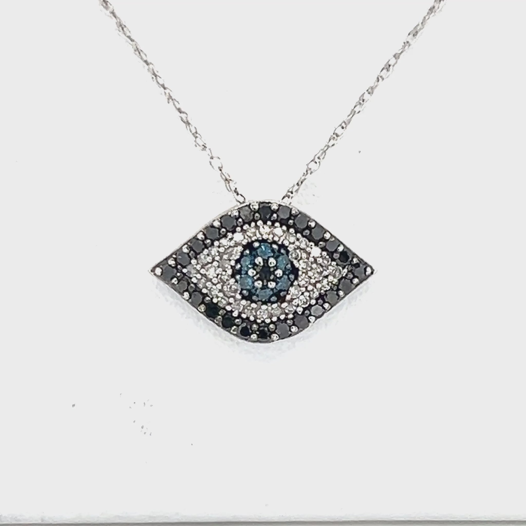 14K White Gold Diamond Eye Pendant on 22" Chain Necklace
