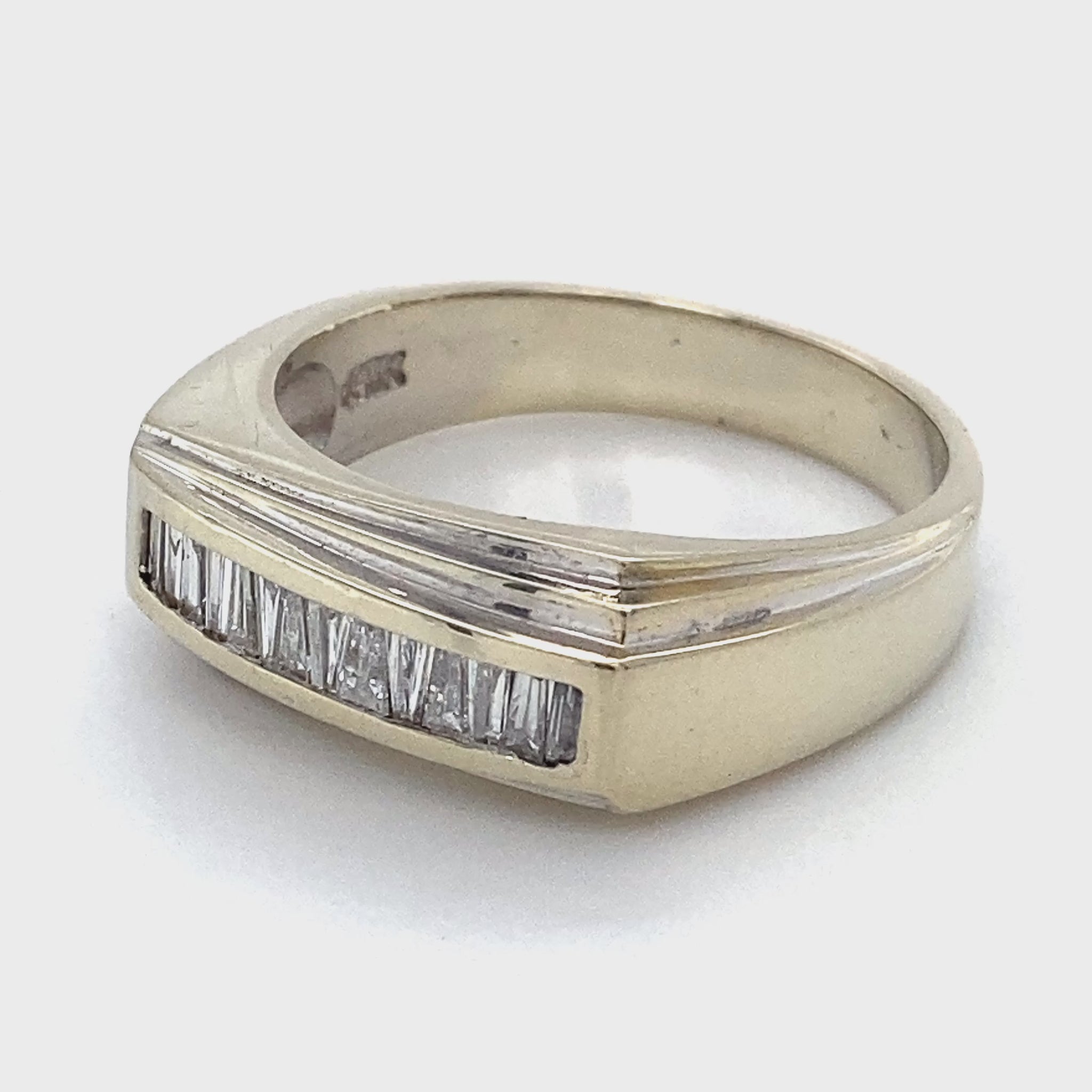 Full Description: GENT'S DIAMOND FASHION RING: 5.9DWT 14K-W/G, 14-BAGUETTE CUT DIAMOND 0.56CTW; SIZE:11