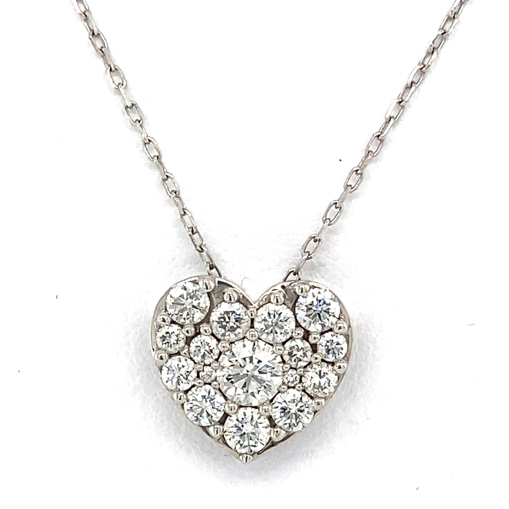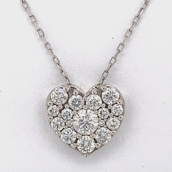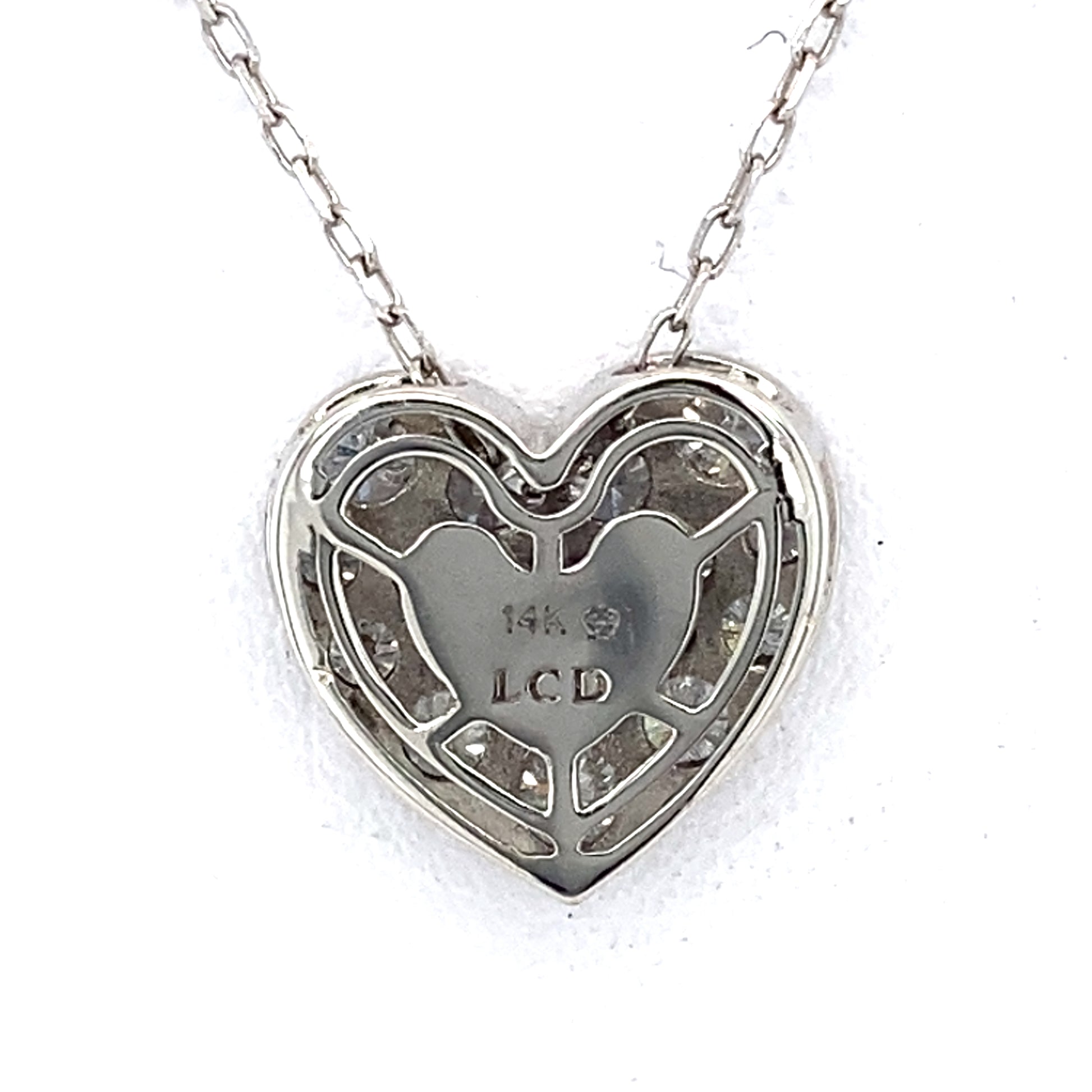14K White Gold Diamond Heart-Shaped Pendant on 18" Chain Necklace