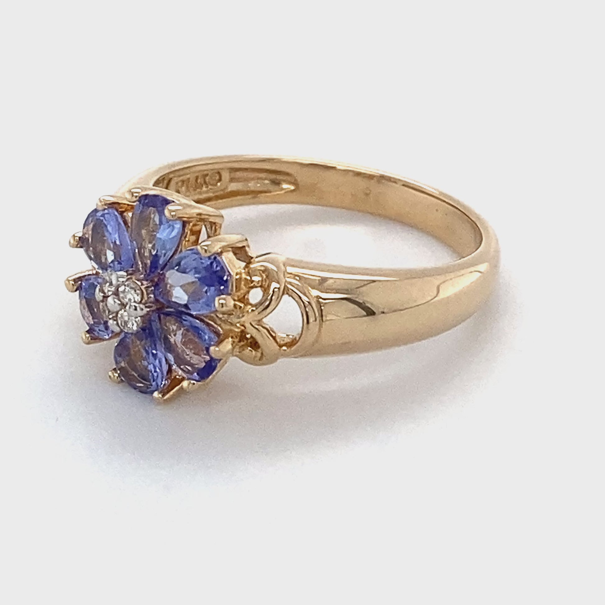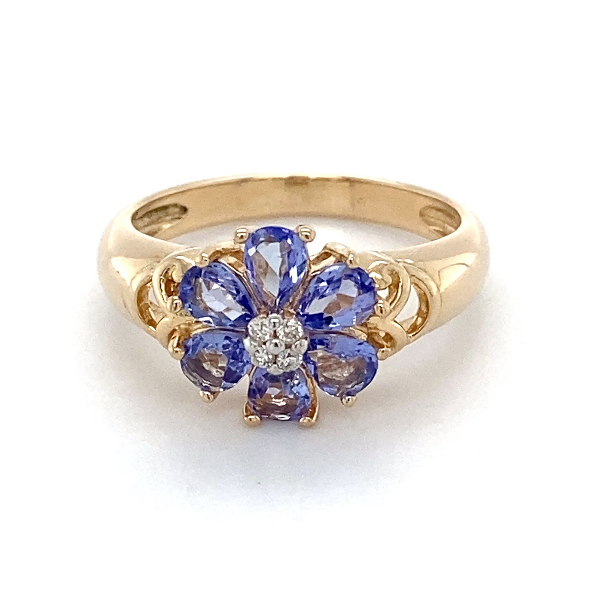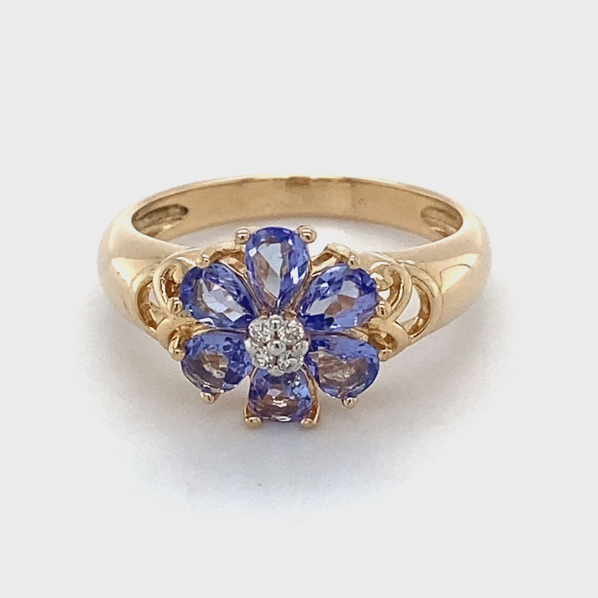 Description: LADY'S STONE & DIAMOND RING: 2.1DWT 14K-Y/G, 6-PEAR CUT AMETHYST 0.99CTW, 4-ROUND BRILLIANT CUT DIAMOND 0.04CTW; SIZE:6
