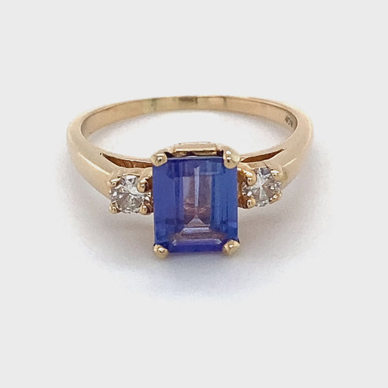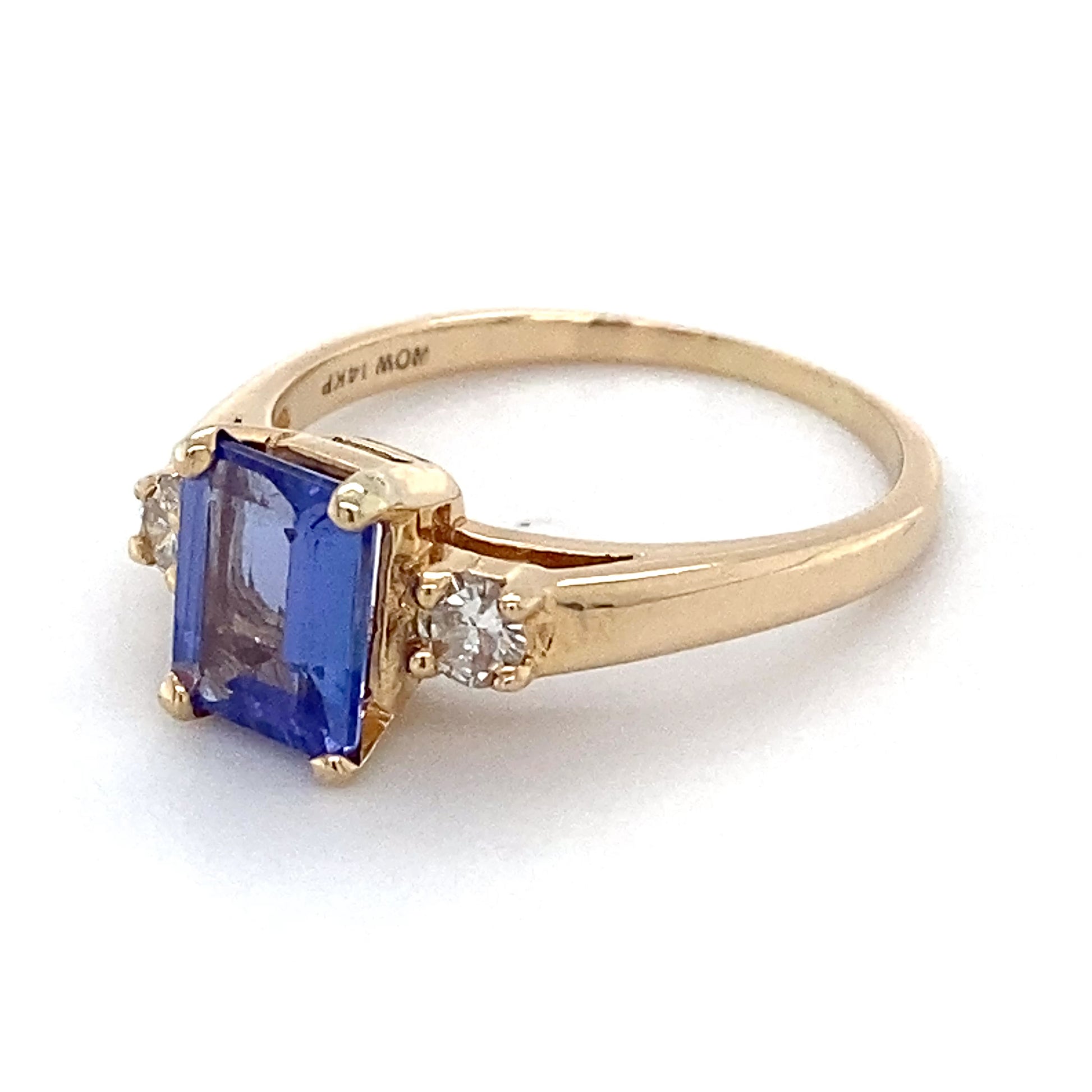 Description: LADY'S STONE & DIAMOND RING: 2.1DWT 14K-Y/G, 1-RADIANT CUT AMETHYST 1.42CTW, 2-ROUND BRILLIANT CUT DIAMOND 0.20CTW; SIZE:7