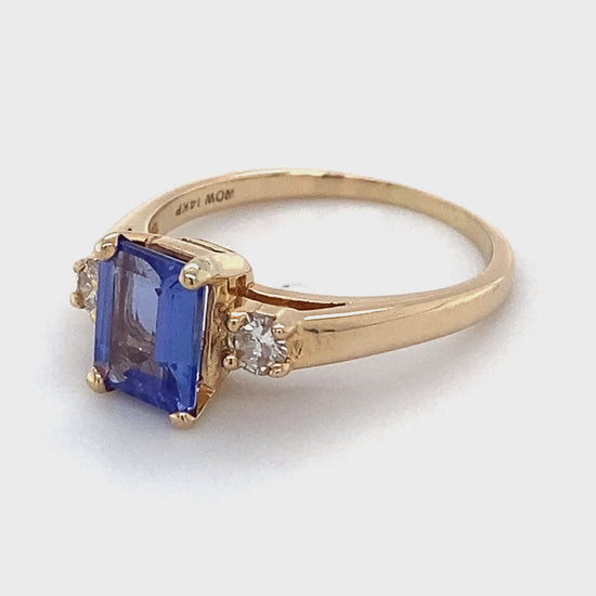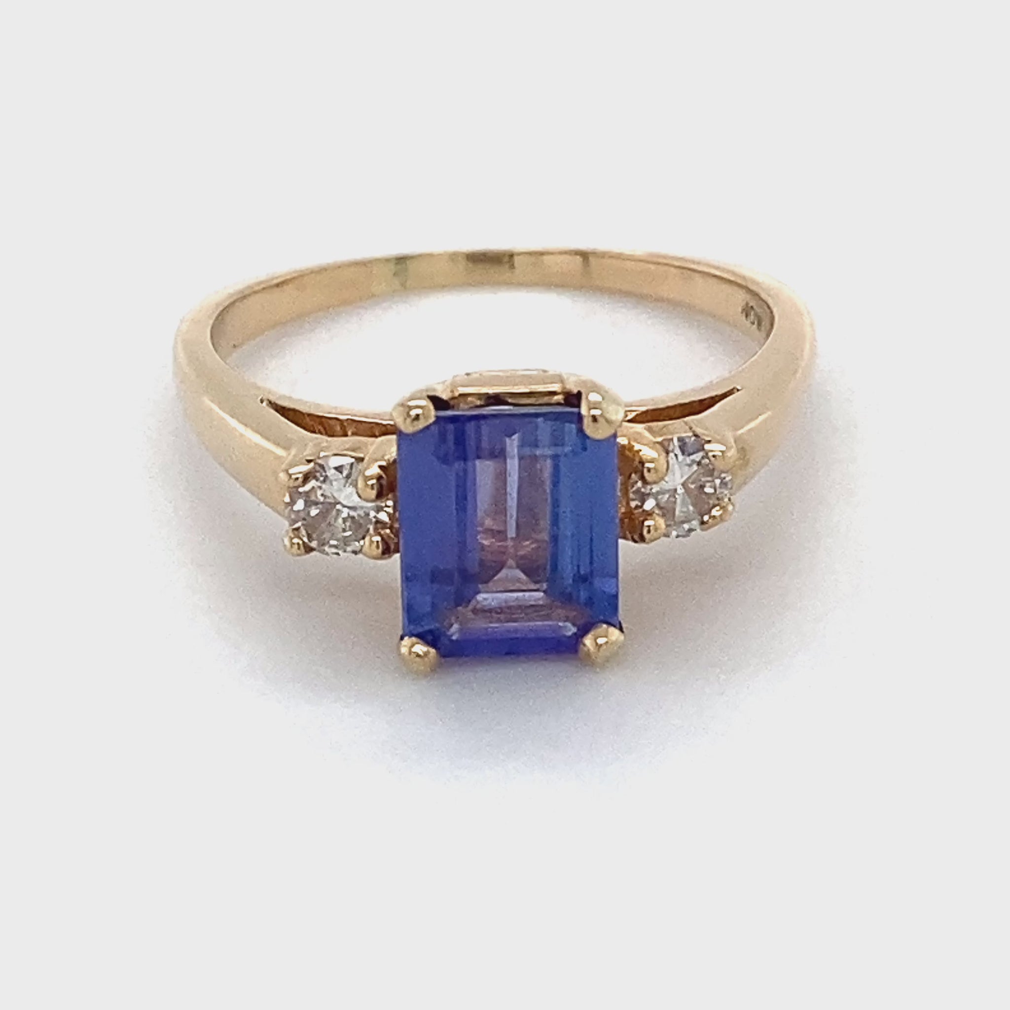 14K Yellow Gold Amethyst & Diamond Ring; 2.1DWT; Size 7