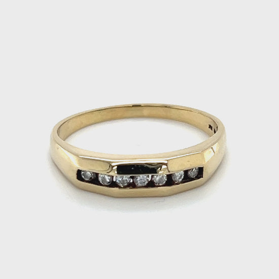 Description: 7 Round Single-Cut Diamonds Set in 14K Yellow Gold; 0.10 CTW; 3.5g; Size 9.5.