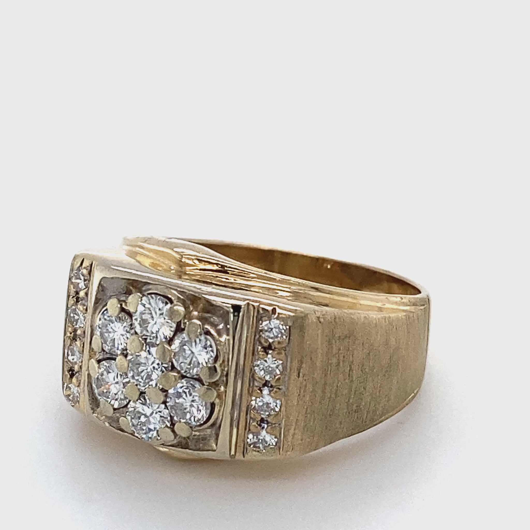 Description: GENT'S DIAMOND FASHION RING: 4.3DWT 14K-Y/G, 7-ROUND BRILLIANT CUT DIAMOND 0.84CTW, 8-ROUND BRILLIANT CUT DIAMOND 0.16CTW; SIZE:9