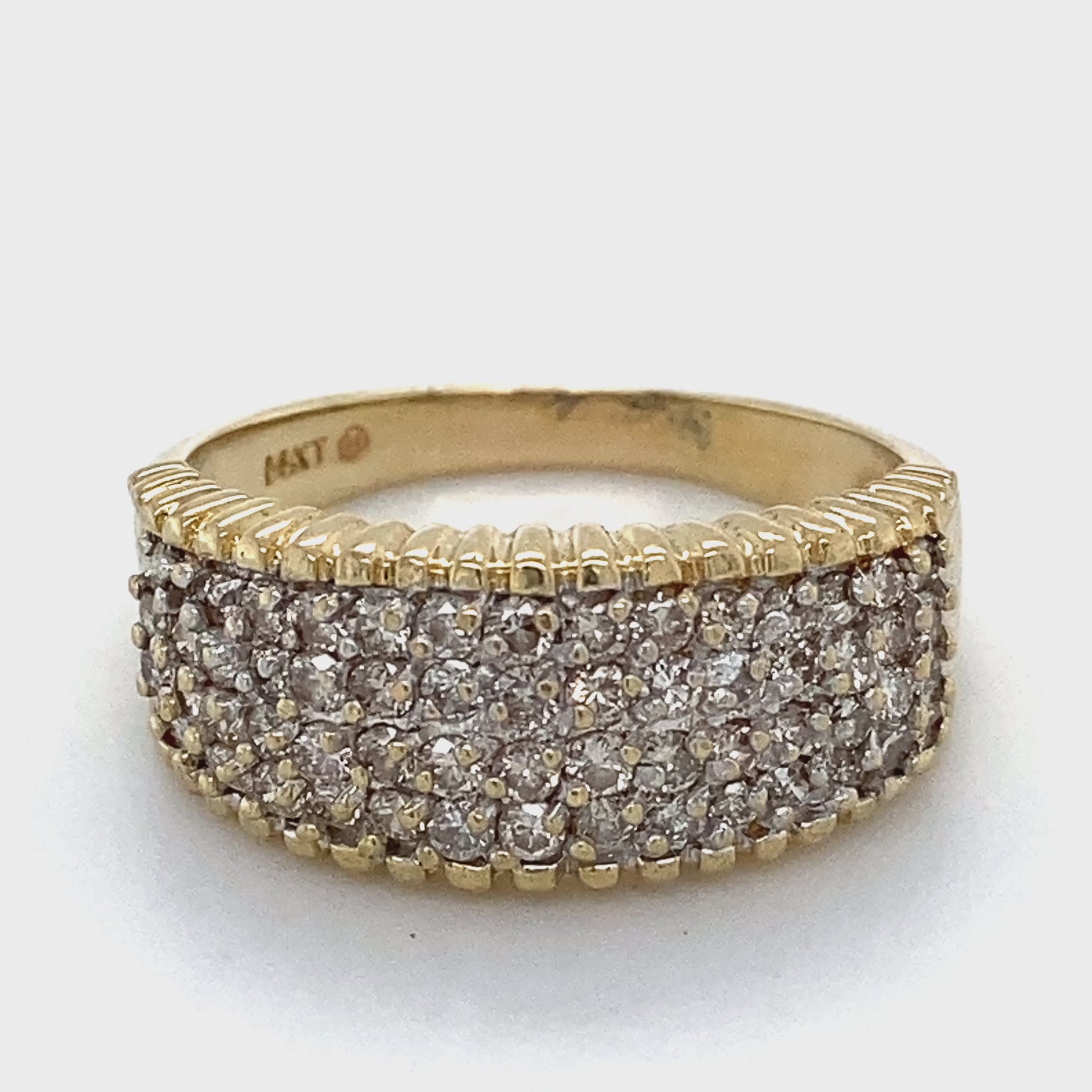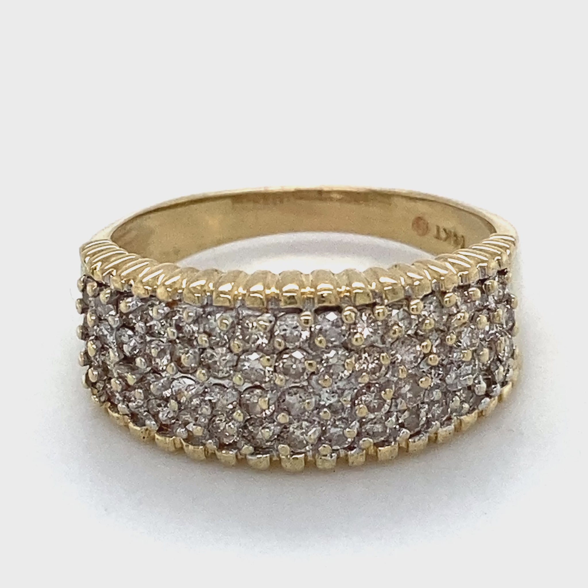 Description: LADY'S DIAMOND FASHION RING: 5.2g; 3.3DWT 14K-Y/G, 52-SINGLE CUT DIAMOND 0.330CTW; SIZE:9