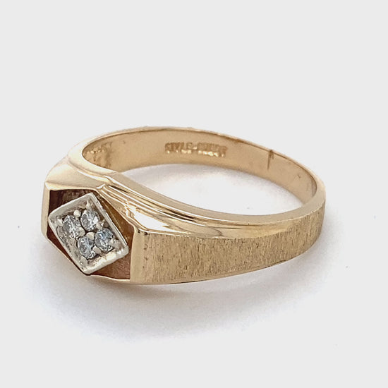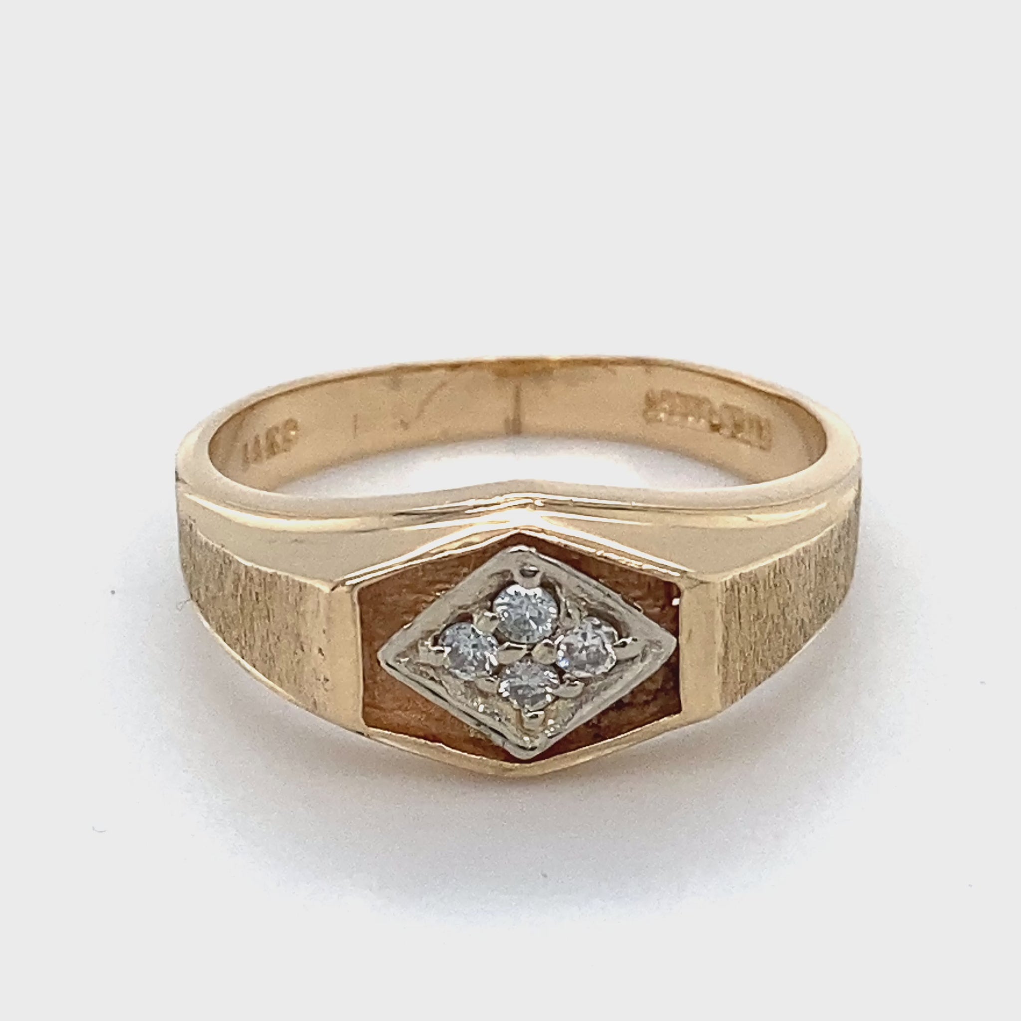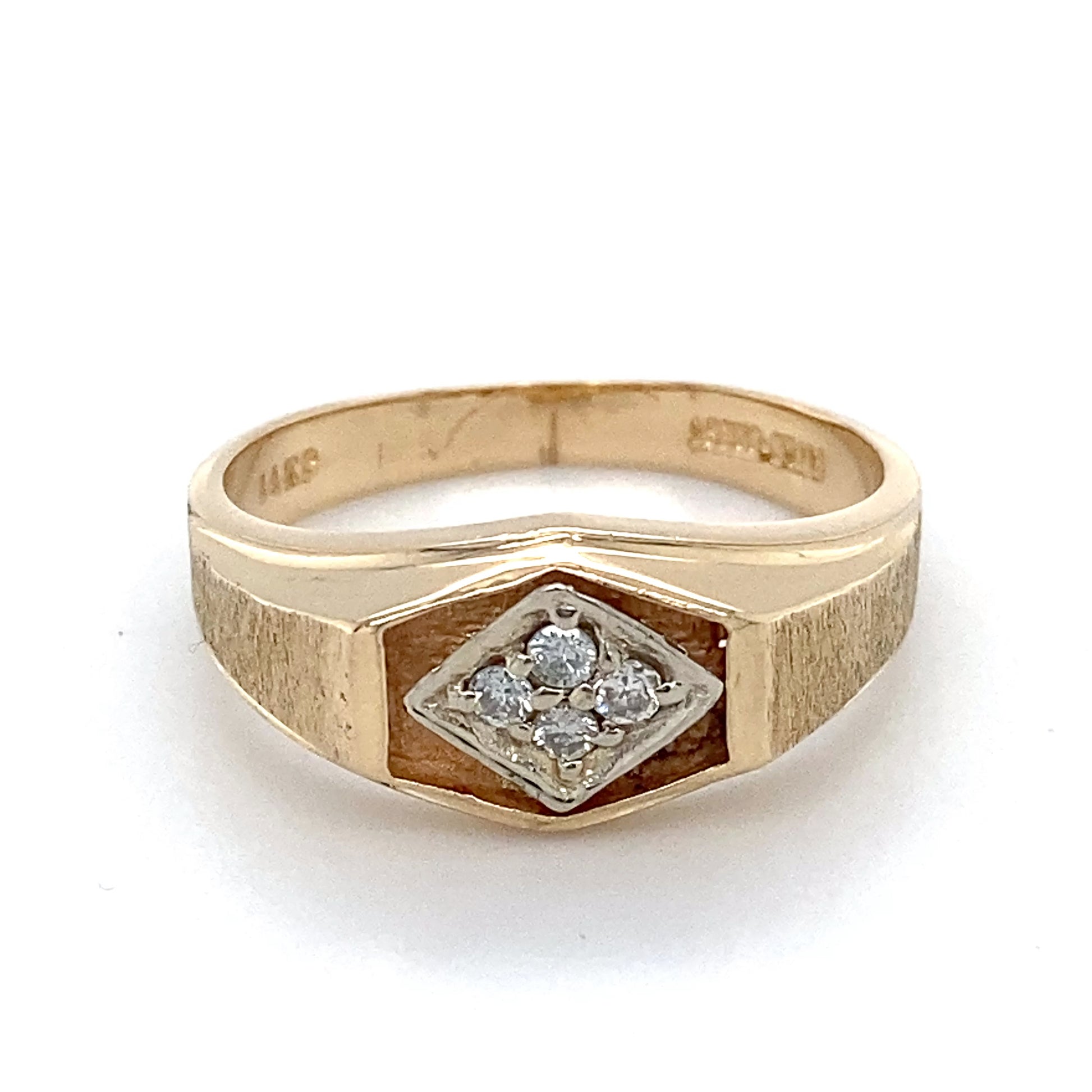 Description: LADY'S DIAMOND FASHION RING: 3.8g, 2.4DWT 14K-Y/G, 4-EUROPEAN CUT DIAMOND 0.05CTW; SIZE:9