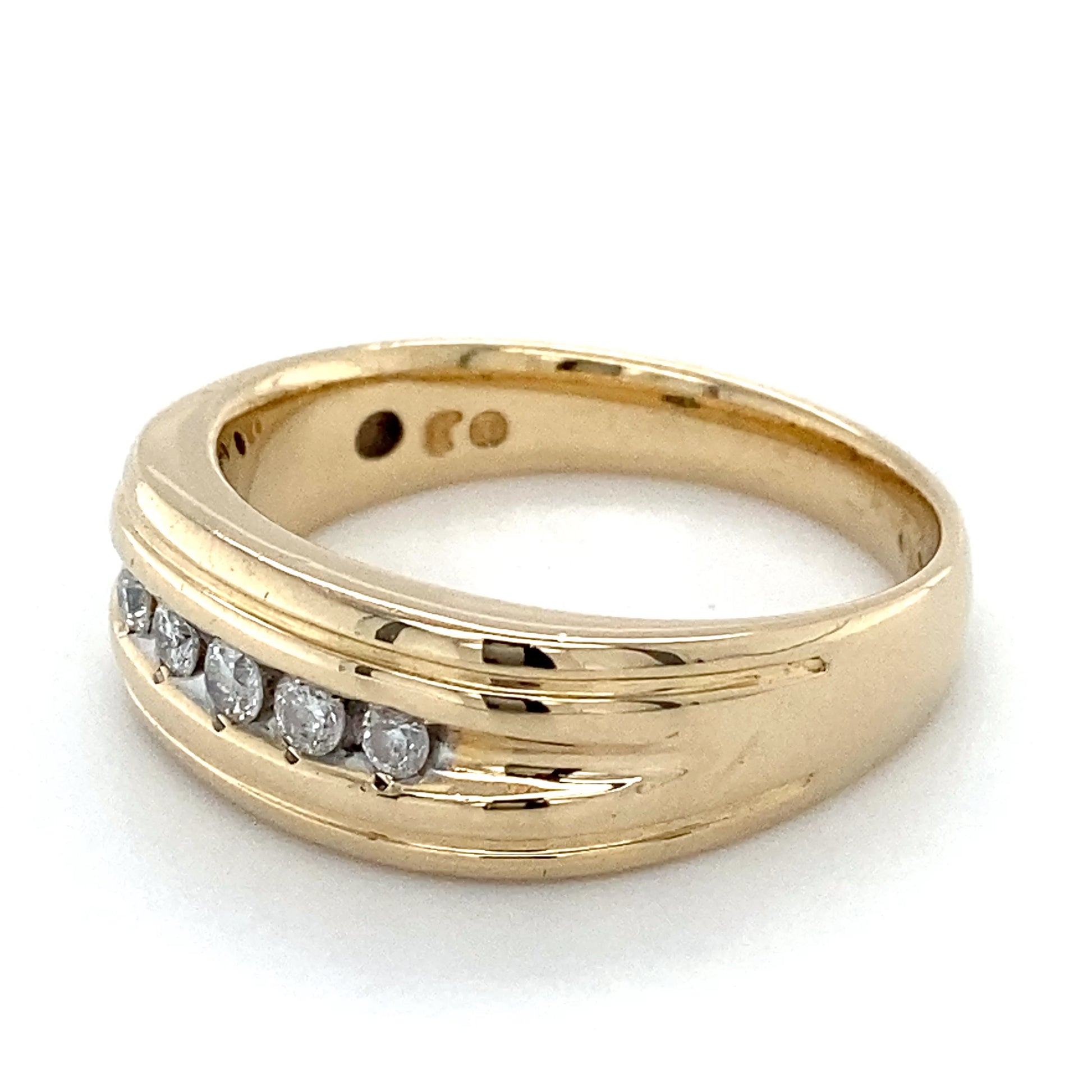 Description: LADY'S DIAMOND FASHION RING: 3.8DWT 14K-Y/G, 5-ROUND BRILLIANT CUT DIAMOND 0.25CTW; SIZE:10.5