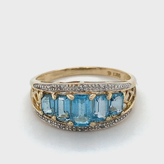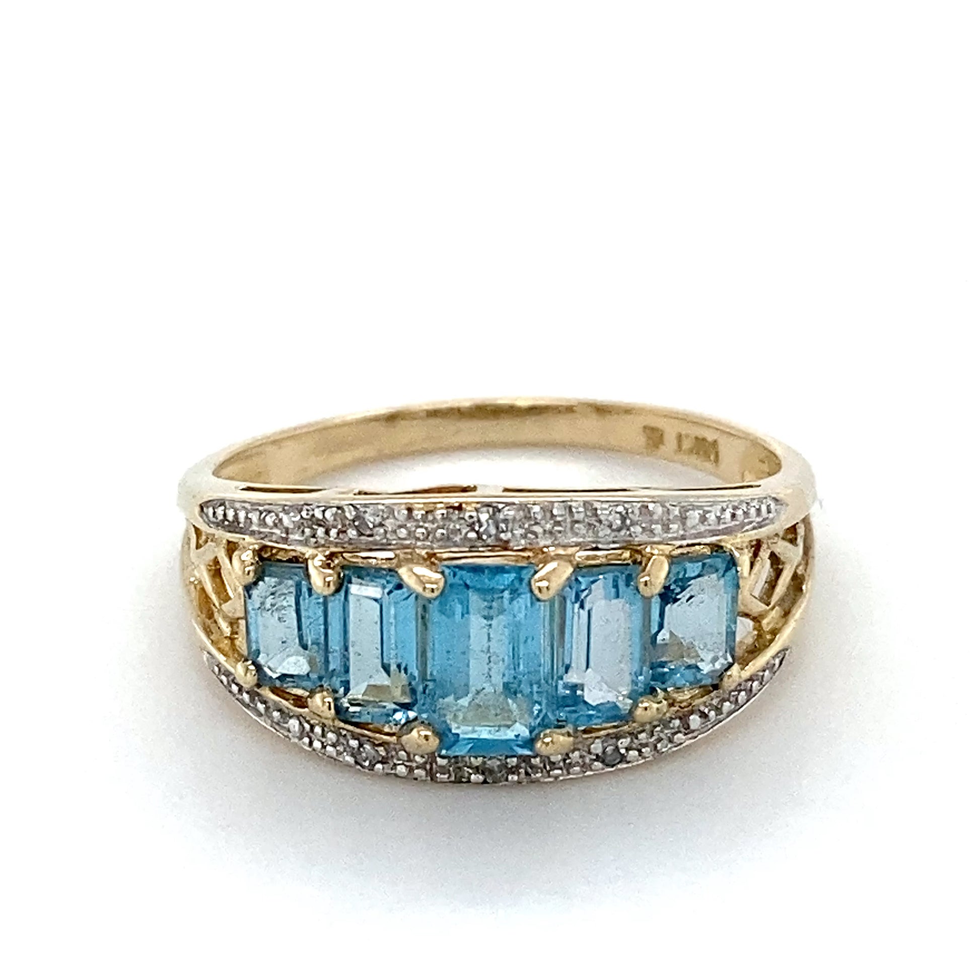 14K Yellow Gold Diamond & Topaz Lady's Ring; 2.2DWT; Size 8.5