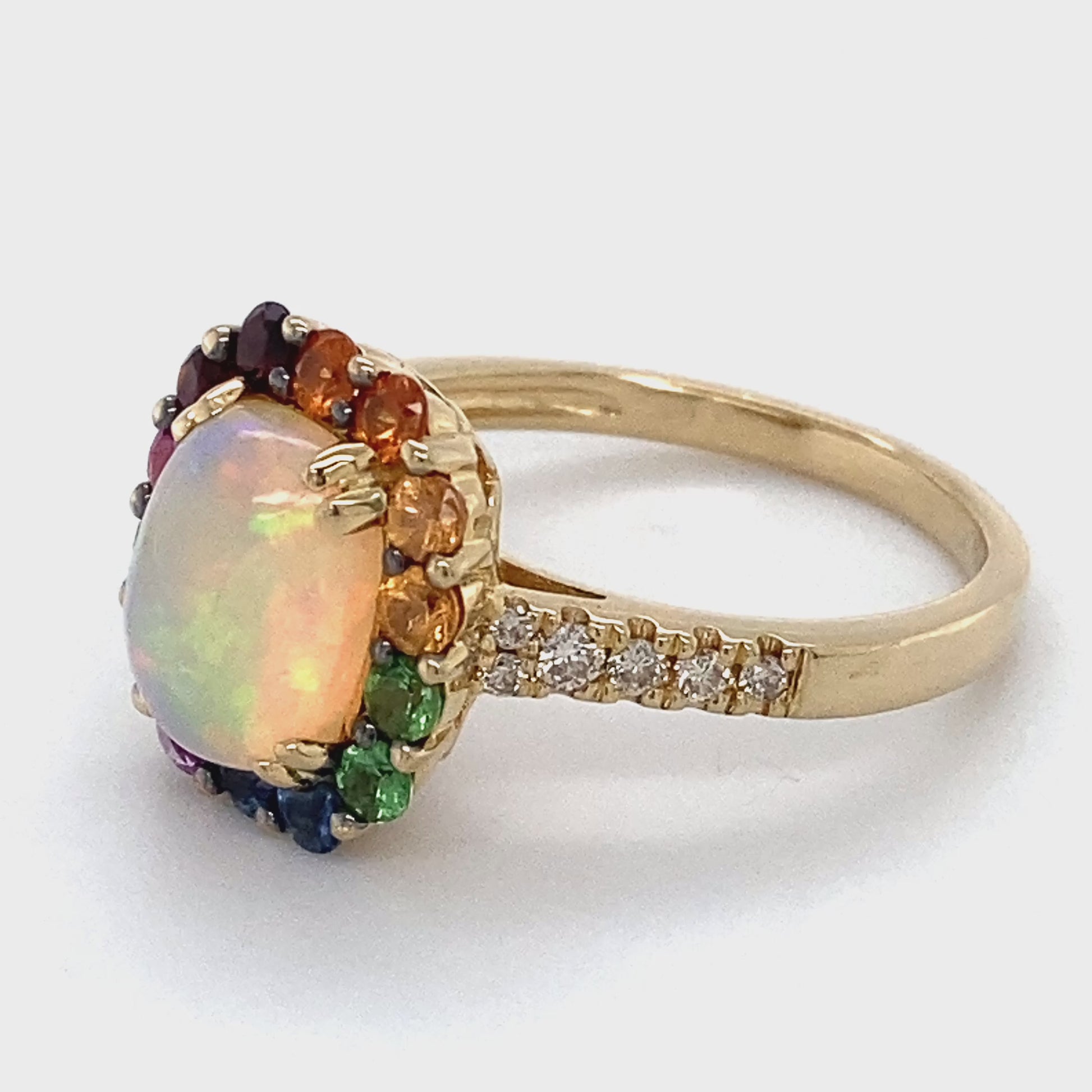 14K Yellow Gold Diamond & Opal Ring; 2.9DWT; Size 7