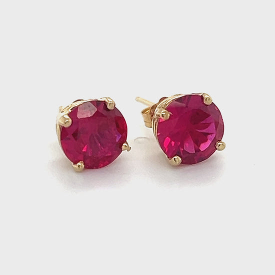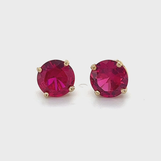 14K Yellow Gold Red Stone Stud Earrings; 1.5DWT; 2.3g