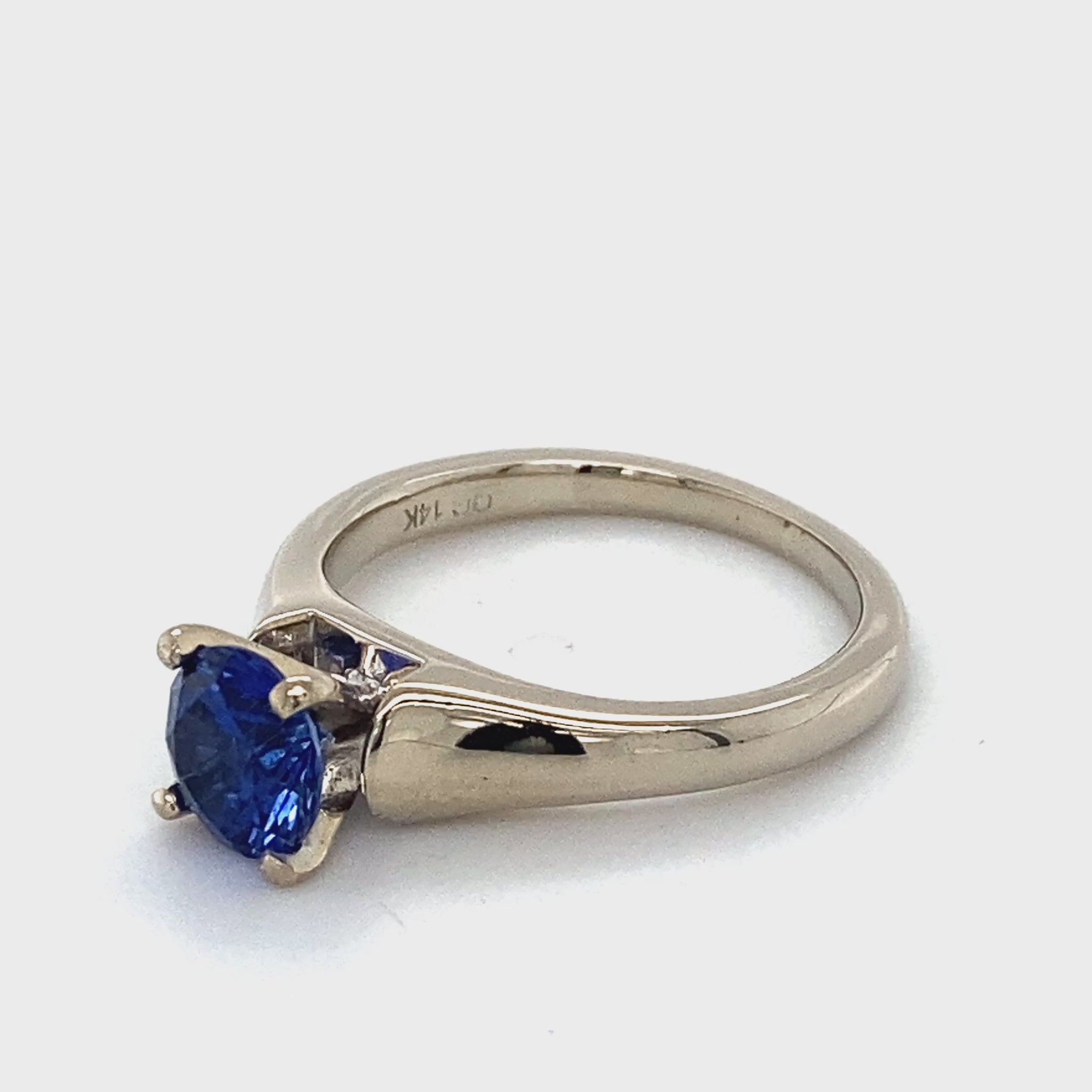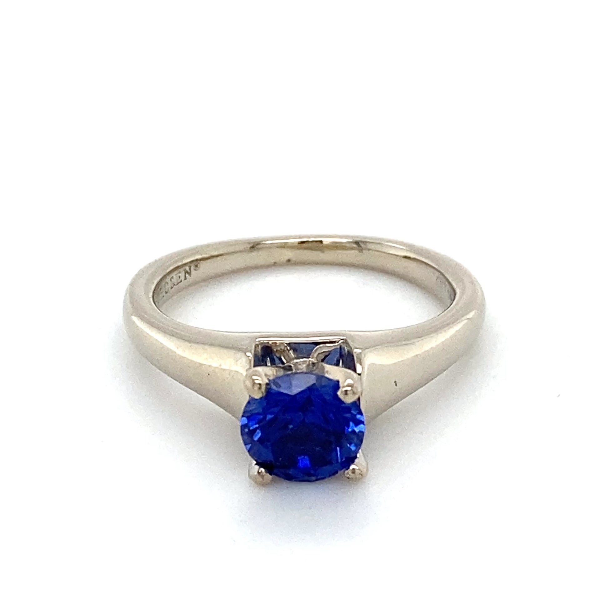 Description: LADY'S STONE RING: 3.8g; 2.5DWT 14K-Y/G, 1-ROUND CUT SAPPHIRE 1.24CTW; SIZE:5