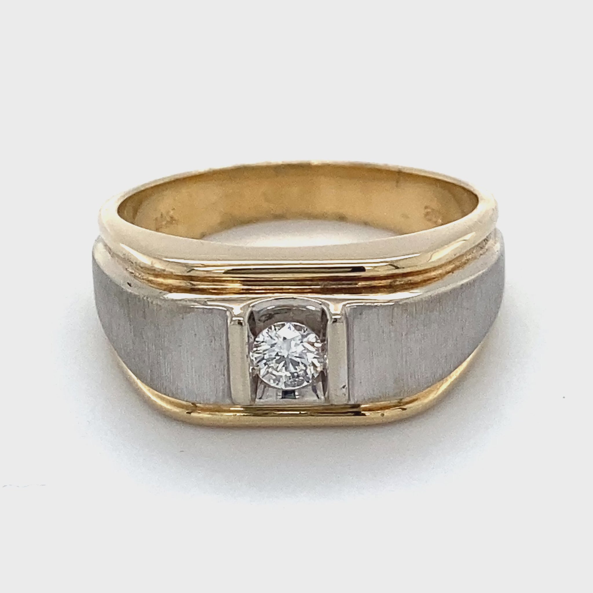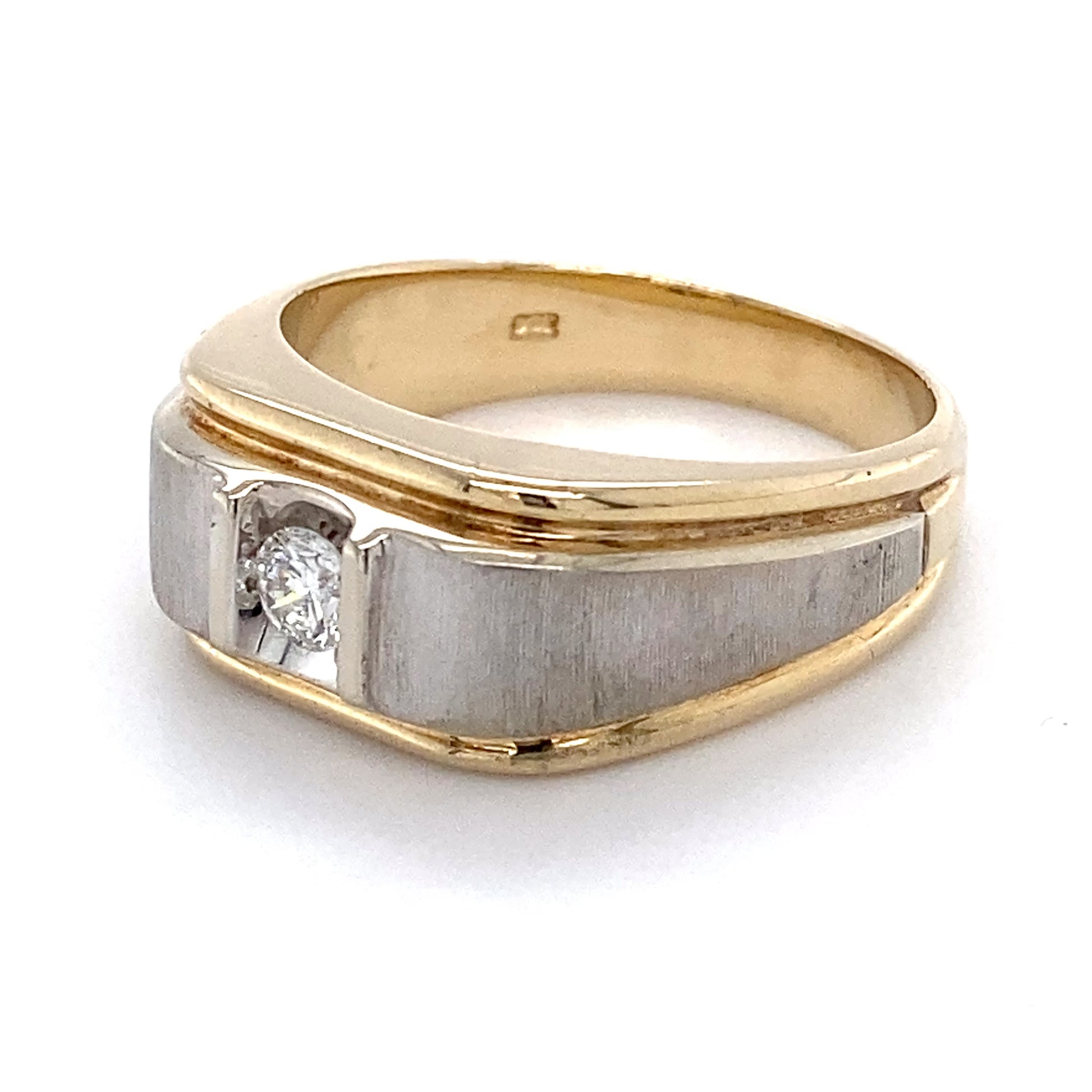 Description: GENT'S DIAMOND FASHION RING: 9.8G; 6.3DWT 14K-2TONE, 1-ROUND BRILLIANT CUT DIAMOND 0.20CTW; SIZE:10.5