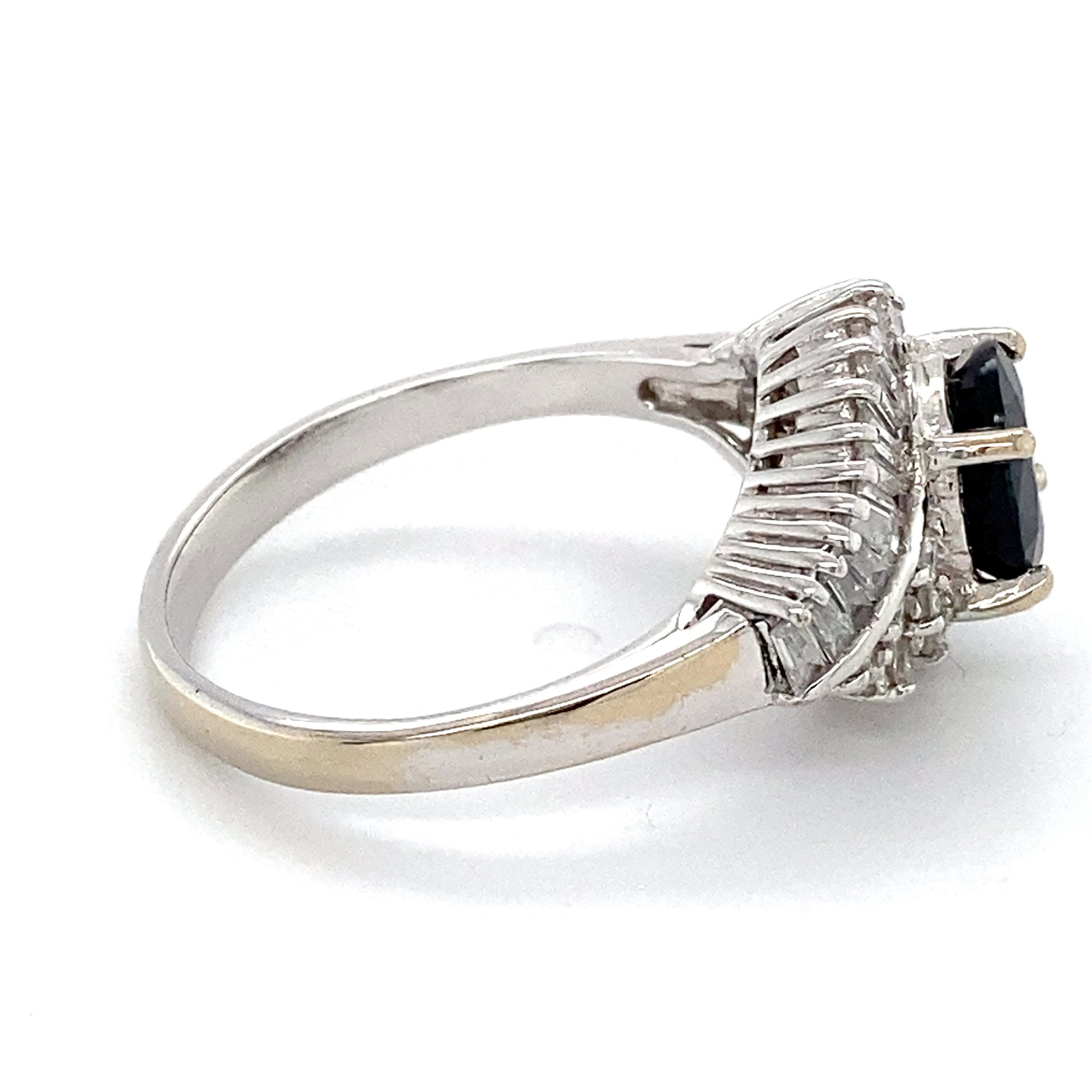 Description: LADY'S STONE & DIAMOND RING: 3.8DWT 18K-W/G, 1-OVAL CUT SAPPHIRE 1.42CTW, 20-BAGUETTE CUT DIAMOND 0.20CTW, 14-ROUND BRILLIANT CUT DIAMOND 0.14CTW; SIZE:7.5