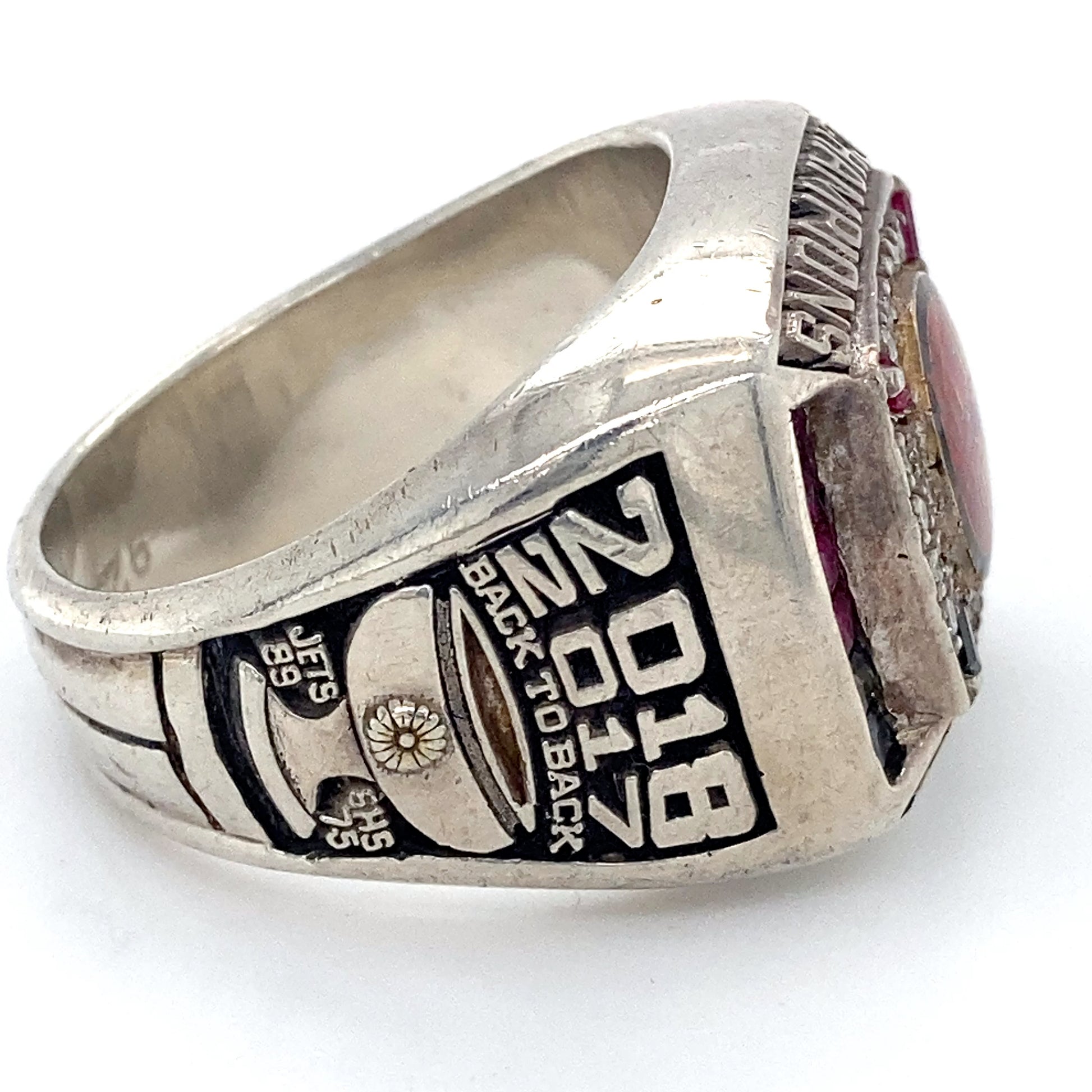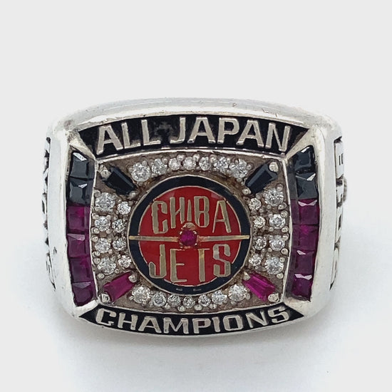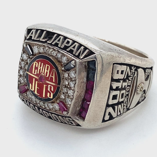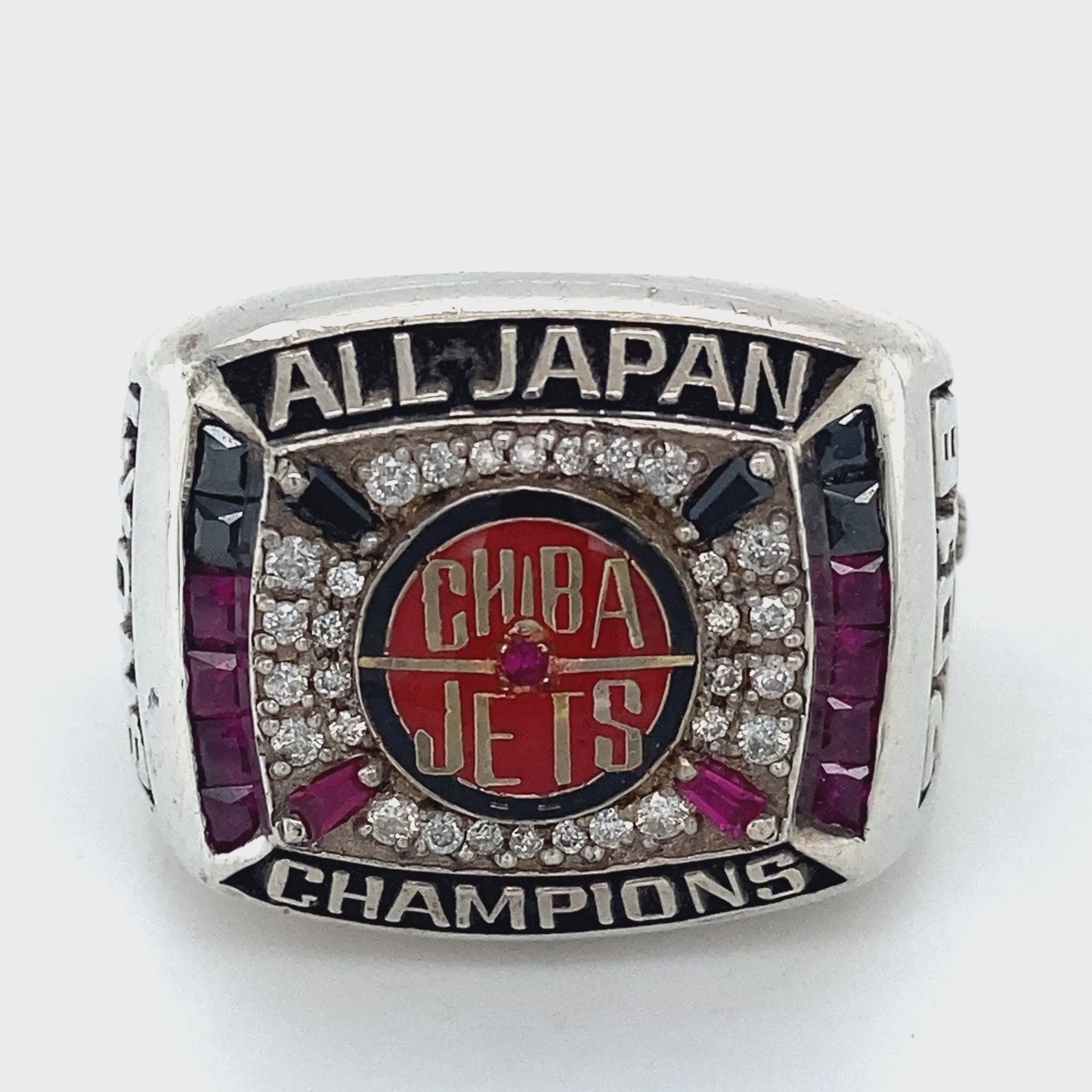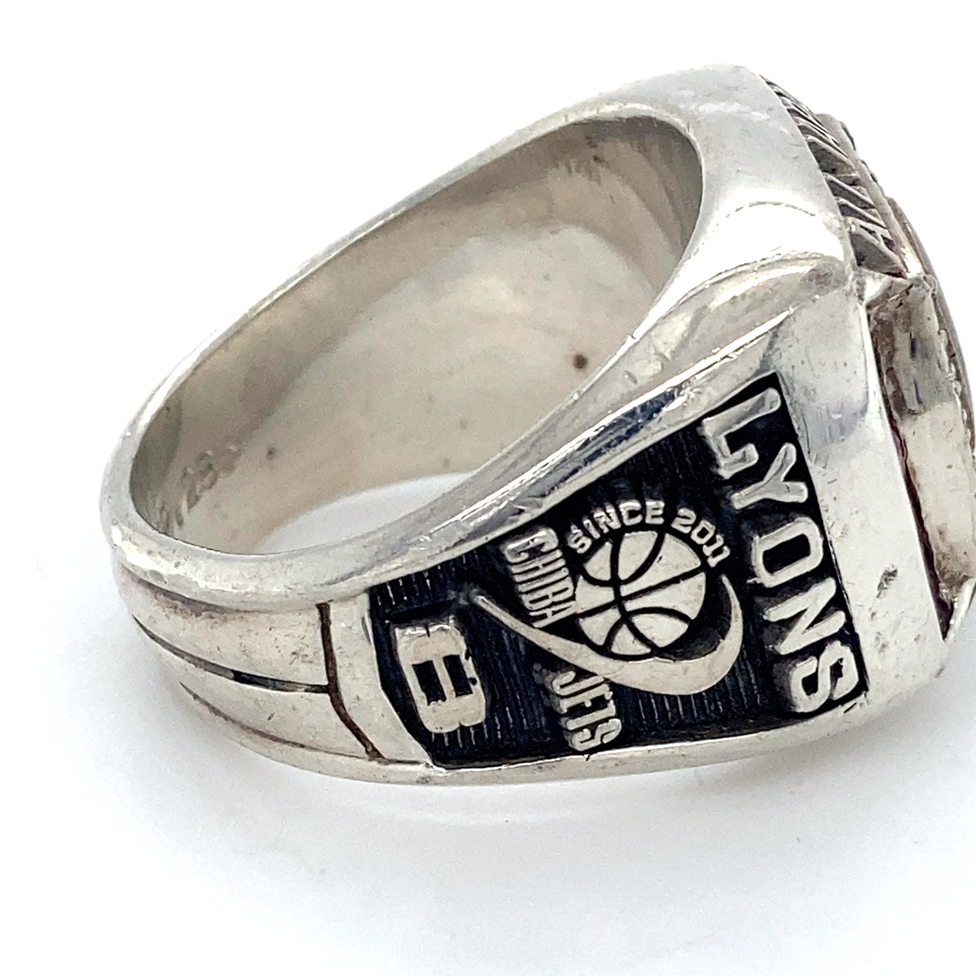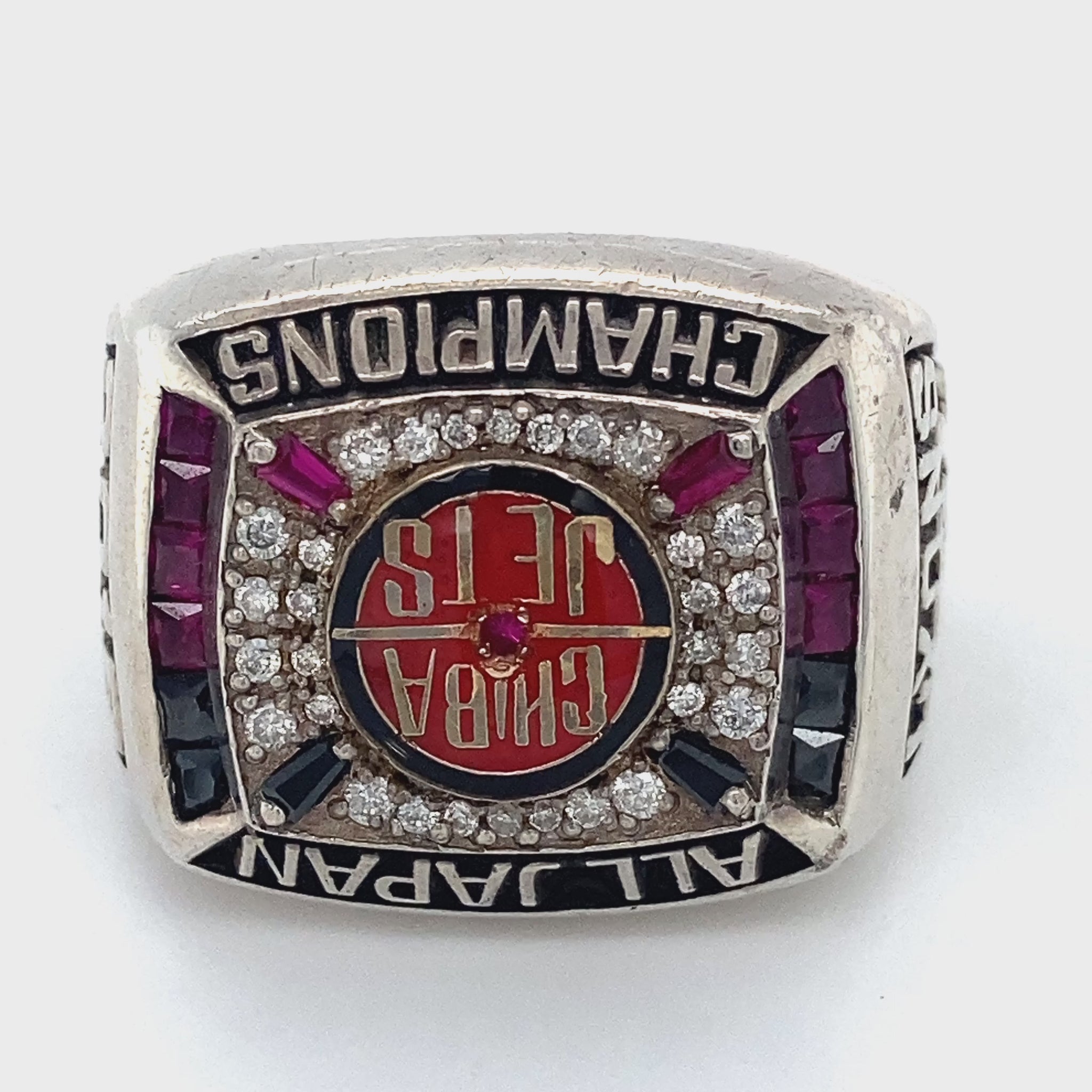 2017-18 Chiba Jets All Japan 2017-2018 Championship Japanese Professional B League Men's Basketball Ring; 32.0g of 925 Sterling Silver with Diamonds, Pink Spinel & Onyx Stones; Size 12