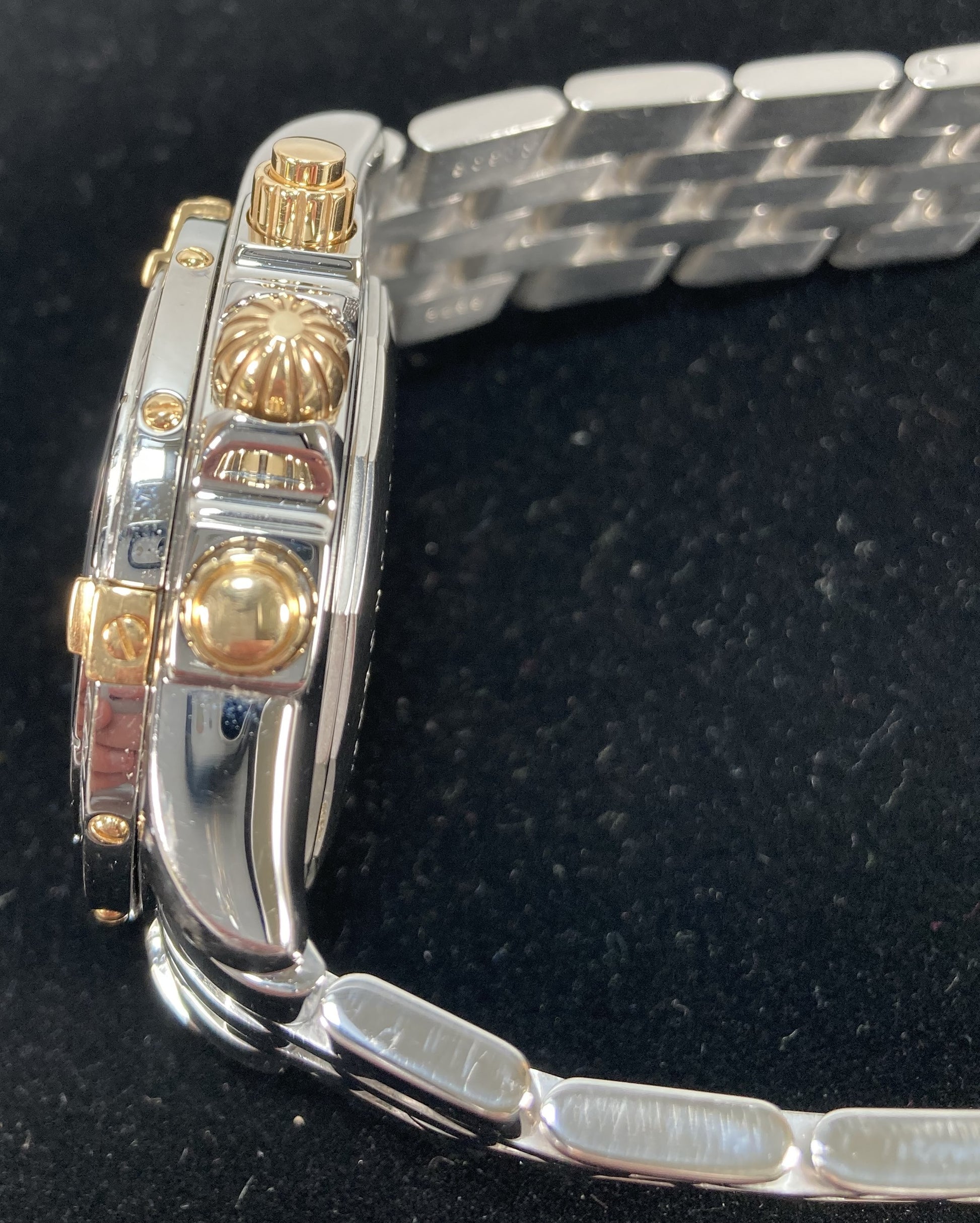 - Case & Bezel: Generally 43mm to 44mm stainless steel with 18K yellow gold accents (rider tabs, crown, pushers). Some models include diamond-set bezels.