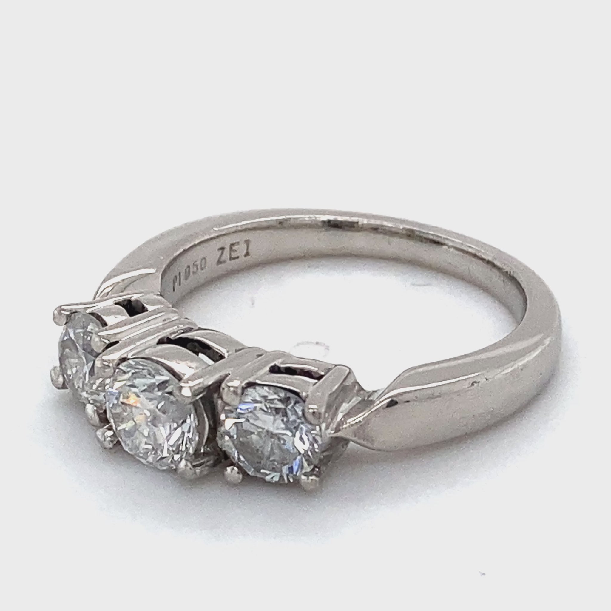 Description: LADY'S PLATINUM DIAMOND FASHION: 8.2g; 5.2DWT PLAT-950, 3-ROUND BRILLIANT CUT DIAMOND 1.30CTW; SIZE: 7